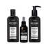 Kit masculino que reúne três produtos essenciais para o cuidado da barba, cabelo, barba, corpo e preparação para o barbear: